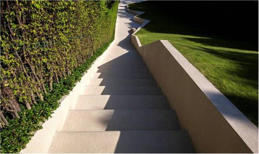 陽光的照射在階梯上產(chǎn)生了有趣的陰影圖案,使草坪山丘更具有活力。陰影在一天之中不斷變化。