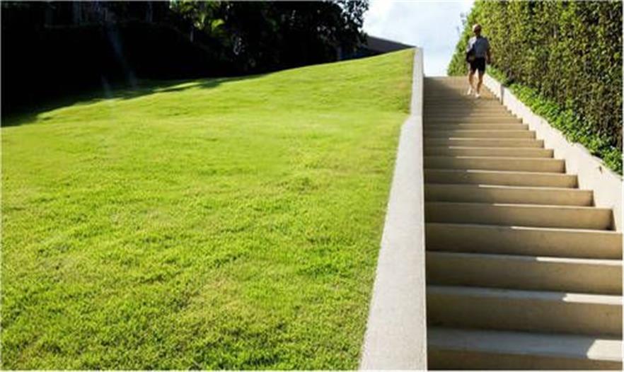 現(xiàn)有的山坡保存了下來,被草坪(Zoysia japonica)所覆蓋,以強(qiáng)化土壤表面。