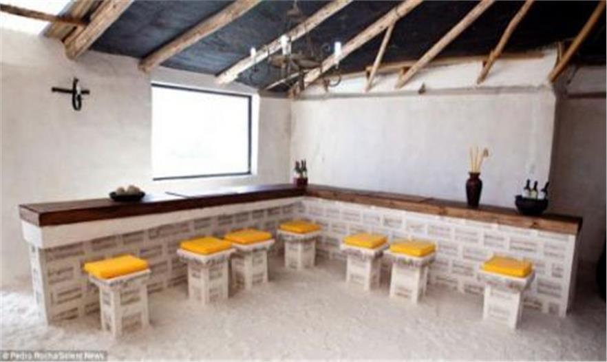 報道指,拉巴斯人民之所以想到用這么獨特新穎的材料來建房子,是因為這個地區(qū)嚴(yán)重缺乏木材和其他傳統(tǒng)的建筑材料。這家酒店的建造使用了100萬塊鹽磚,地板、墻壁、天花板、家具,還有雕像都是用鹽磚造的。
