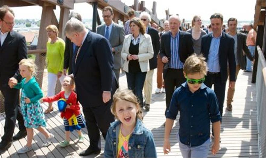 5月17日,新落成連接 Koninklijke Baan(當(dāng)?shù)馗咚俟罚┖脱睾5贪兜腤enduine橋向公眾開放。比利時(shí)海事和海岸服務(wù)機(jī)構(gòu)管理者雅克·德有,在一般的當(dāng)?shù)鼐用瘢浾吆蛶讉€(gè) West 8代表面前作剪彩儀式。