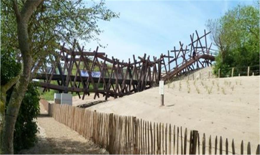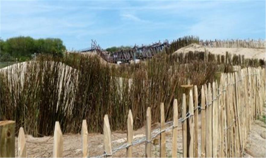 “DE WRAKHOUT ” , (荒木)橋堤供騎車人,行人和泳客安全穿越一個(gè)點(diǎn)。新的結(jié)構(gòu)提供了圩田和沙丘之間的橋梁。游人在此,可欣賞到大海全景,沙丘和Uitkerkse圩田。