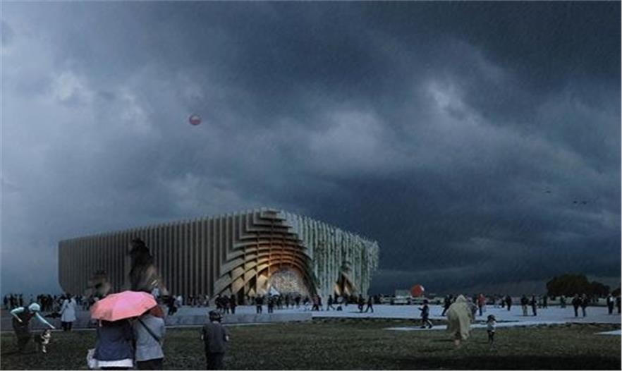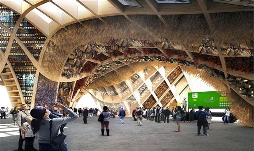 展館地面將容納一個(gè)圍繞法國食品生產(chǎn)的展覽。樓上的餐廳欲提供該場(chǎng)地內(nèi)生長(zhǎng)的水培蔬菜和陽臺(tái)上種植的芳香草本植物。