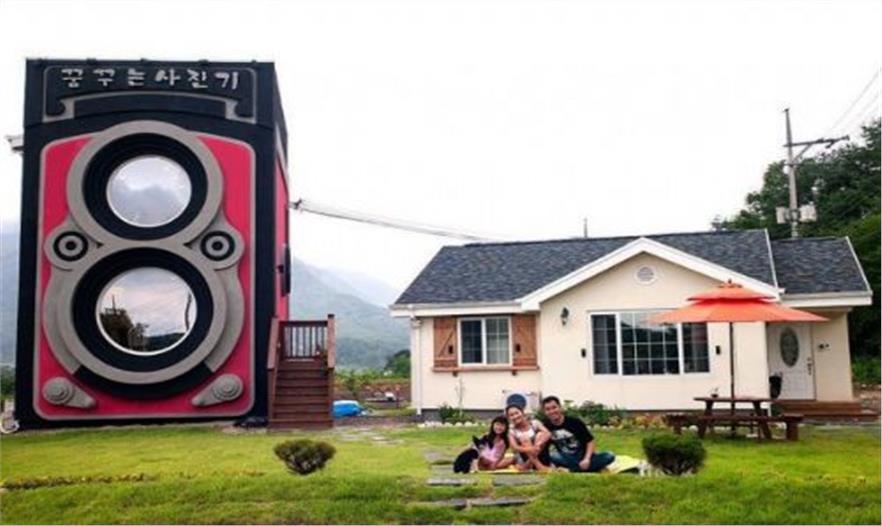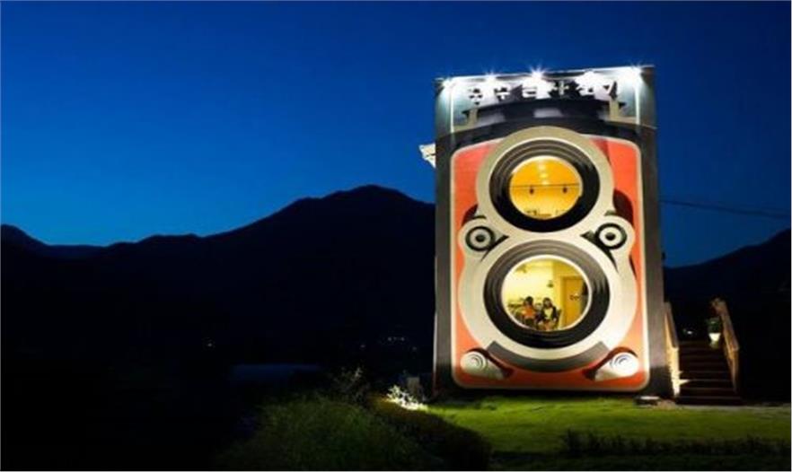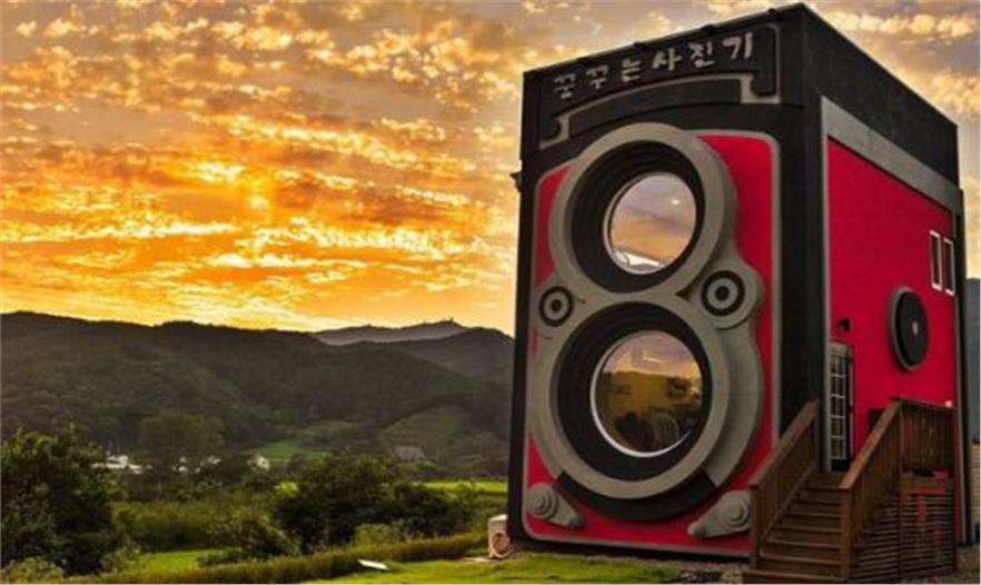 Dreaming Camera是一個位于韓國Yangpyeong縣郊外的很精巧的咖啡店??Х鹊甑耐庥^是由一個攝影愛好者設(shè)計(jì)的,整個形狀看起來就像是一個巨大的古董相機(jī)。