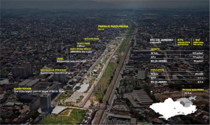 過去20多年的研究表明,里約熱內(nèi)盧北部的綠地和閑置地的需求量越來越大。在密集的居住區(qū),97%的城市土地被用作建設(shè)用地,人均綠化面積不到1平方米。然而,新建的米度雷那公園改變了這一面貌,讓當(dāng)?shù)厝说纳顭ㄈ灰恍?。該?xiàng)目于2012年6月啟動,并以109,000平方米的占地面積成為該市第三大城市公園。