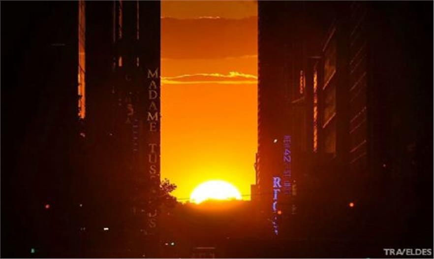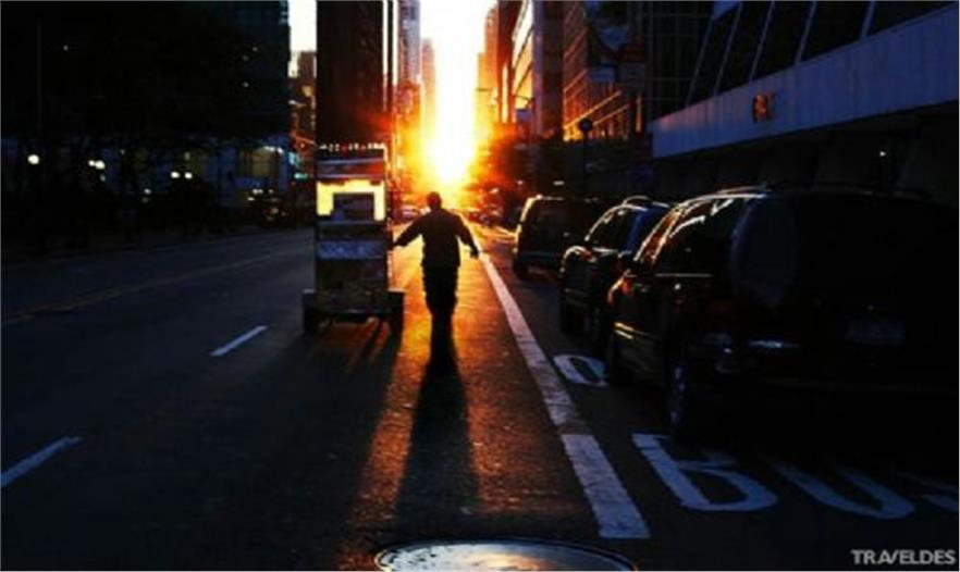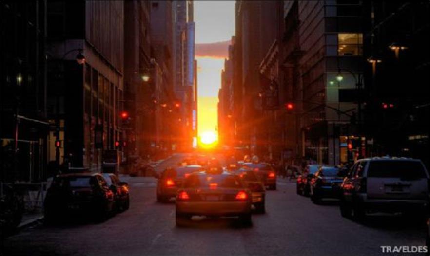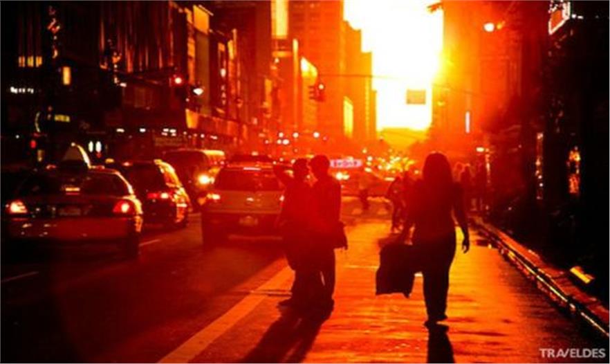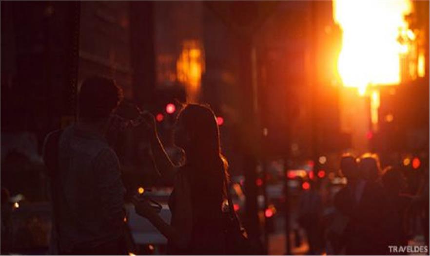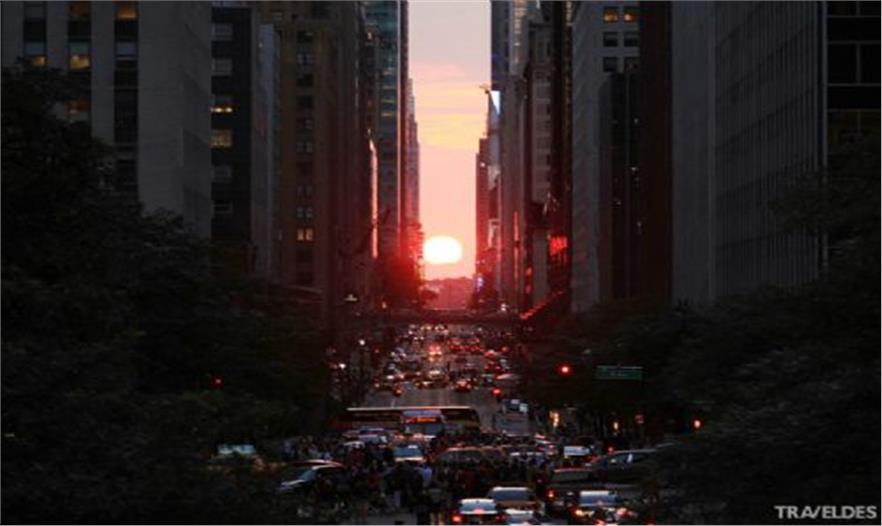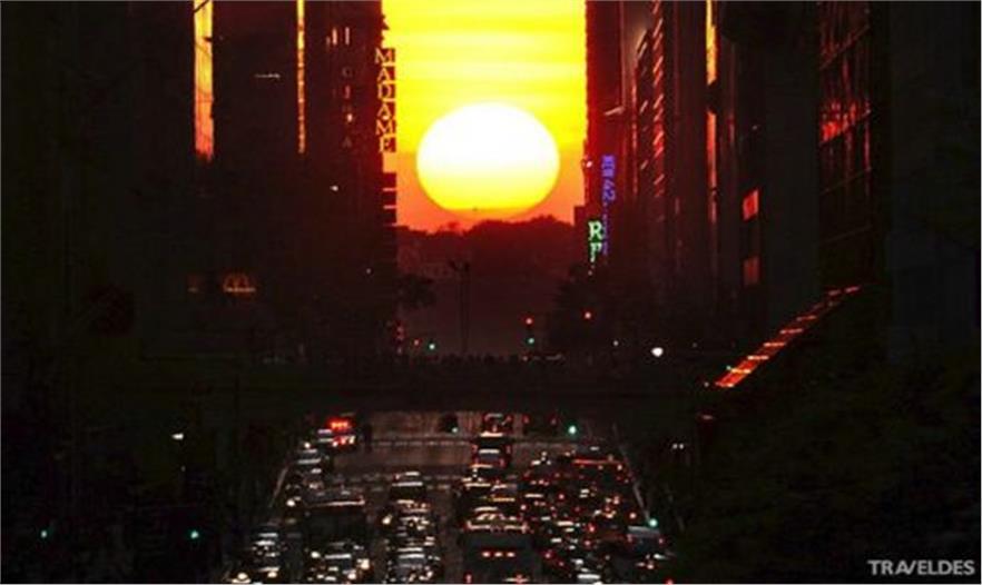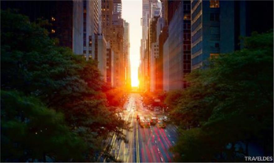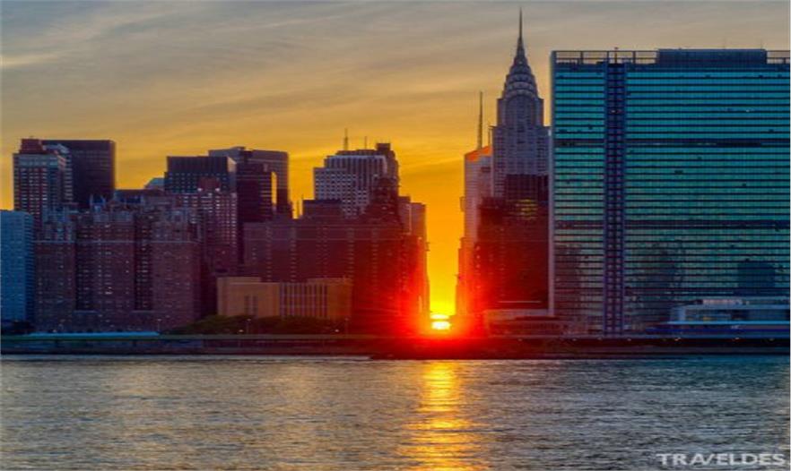 Manhattanhenge / Manhattan Solstice(曼哈頓巨石陣 / 曼哈頓懸日)是美國紐約一年兩次罕見的美景,是自然現(xiàn)象與城市建筑共同形成的絕佳景觀。由于曼哈頓街道大多呈棋盤式布局,當(dāng)“曼哈頓懸日”出現(xiàn)時,日落余暉將灑滿曼哈頓東西向的街道,金燦燦的太陽仿佛懸在街道的盡頭,呈現(xiàn)一幅極為浪漫和壯觀的景象。今年的“曼哈頓懸日”如期在5月29號8:16 PM首次出現(xiàn),如果不巧錯過了,那么請一定要把握住7月12號8:25 PM 本年度最后的觀賞機會。