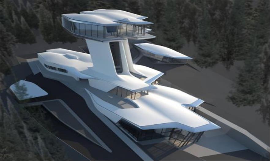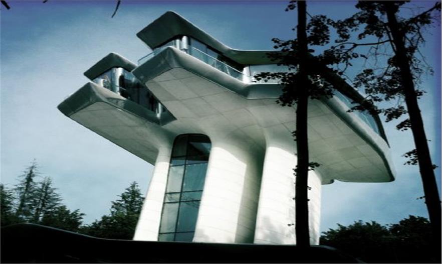 Zaha Hadid建筑事務(wù)所在俄羅斯Barvikha設(shè)計(jì)了首都山別墅,它坐落在長滿松樹和樺樹林立的北面山坡上。這是一座流動(dòng)性幾何的別墅,在山坡上順勢(shì)而起。別墅低處依附山坡,高處全景俯瞰遠(yuǎn)處的森林。