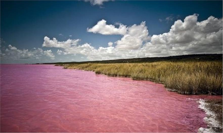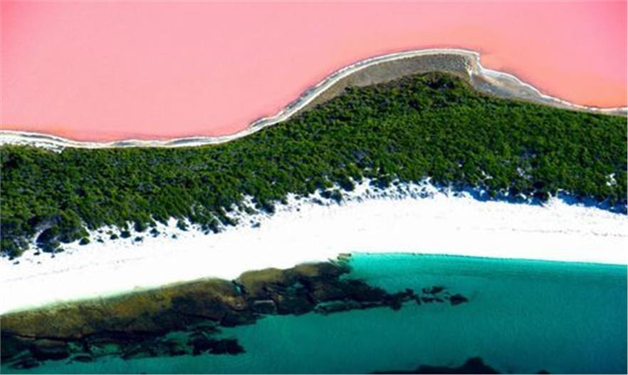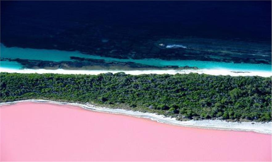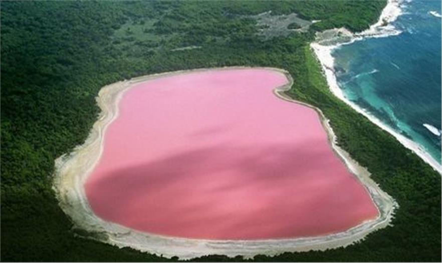 希利爾湖位于勒謝什群島的中島上,約有600公尺長,250公尺寬,是個不算小的鹽水湖。曾因美麗的粉紅湖水登上過2013年《國家地理雜志》的封面。當(dāng)湖水的鹽度增加時,湖中的嗜鹽藻類(如杜氏鹽藻)就會因?yàn)檫@些過多的鹽分而開始大量繁殖。而在繁殖過程中,會產(chǎn)生大量的β-胡蘿卜素,讓湖水泛著一層淡淡的粉紅色。因此,不同時間來到希利爾湖,湖水的粉色程度都稍有不同,隨著鹽度的變化,湖面也會從淡綠色到濃稠的粉紅。