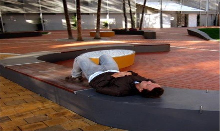 悉尼有著十分奢侈的物質(zhì)生活,同時(shí)也是流浪人口最多的地方,隨處可見在烏魯姆魯附近公共場所休息的流浪人。從1974年開始,這里啟動(dòng)了澳大利亞歷史上最大的城市項(xiàng)目,悉尼市集中重建這一區(qū)域,讓中等收入家庭更加愿意利用流浪人口聚集的公共空間。Walla Mulla公園位于鐵路軌道之下,過去這里聚集著許多無家可歸的人們。設(shè)計(jì)師重新設(shè)計(jì)的宗旨是讓這塊區(qū)域仍然會(huì)吸引很多的流浪漢,而不是對(duì)他們的空間進(jìn)行侵略。最終的方案是鼓勵(lì)分享空間,利用柔和的線條,不同的活動(dòng)項(xiàng)目來區(qū)分空間。
