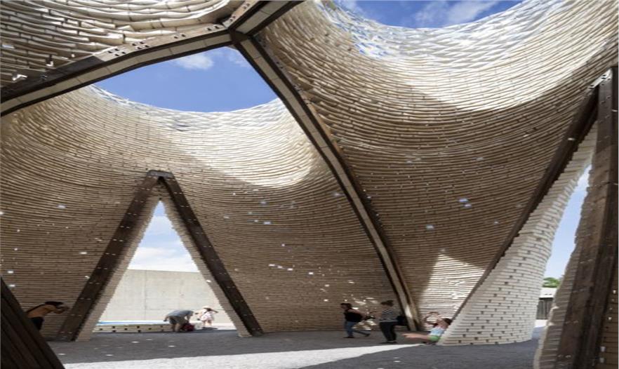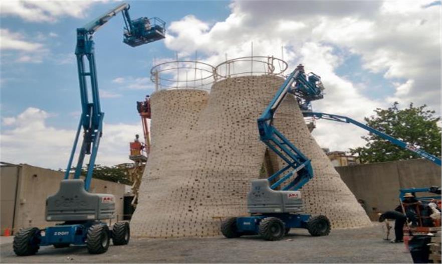 在紐約現(xiàn)代藝術(shù)博物館PS1當代藝術(shù)中心的庭院中,出現(xiàn)了一座40英尺(12.2米)高的圓錐狀高塔。這個看上去像擰麻花一樣的煙囪好像是用磚塊壘砌的,確實,這座建筑的確是磚塊建成的。但是磚塊的材料可不是粘土,而是玉米秸稈和真菌菌絲混合制成。