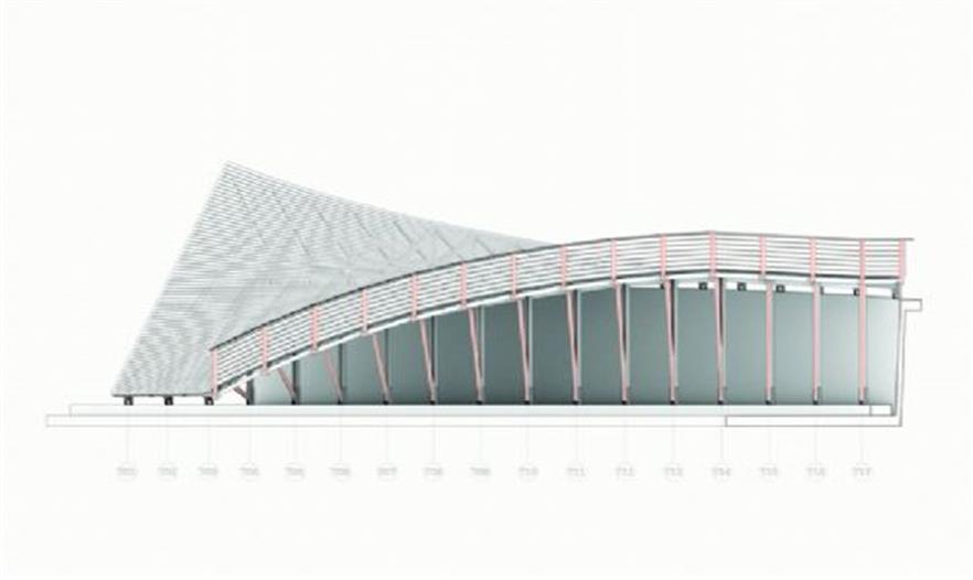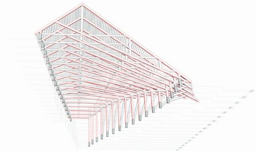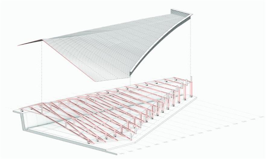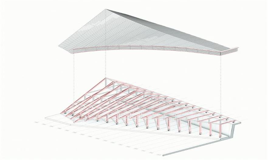 在圖書館內(nèi),桁架作為提供整體結(jié)構(gòu)的支撐物的同時,也向下延伸形成一個簡單的浮動書柜,向當(dāng)?shù)厝颂峁┟赓M閱讀材料。堅固的學(xué)校長椅用作閱讀座位,而聚碳酸酯做成的門可以打開使空氣流通并和外面的廣場聯(lián)系起來。