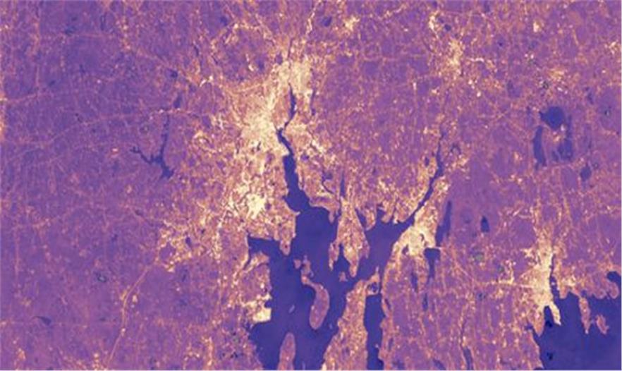 美國(guó)東北部羅得島州普羅維登斯市區(qū)和周邊地區(qū)的溫差。(自美國(guó)航空航天局)