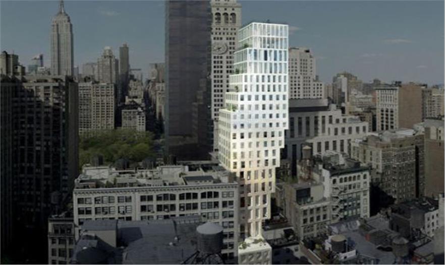 雷姆·科爾哈斯(Rem Koolhaas)為紐約東二十二街23號設(shè)計的這個方案從一個戲謔的角度重新審視了傳統(tǒng)高層建筑。這座尚未建成的建筑被描述為“擁堵文化中的豪華高層公寓”。憑借《癲狂的紐約》一書,科爾哈斯在擁擠空間建筑領(lǐng)域掀起了一場風(fēng)暴。他的這一設(shè)計使用了懸臂結(jié)構(gòu),使得整座建筑可以突破城市街區(qū)的限制,像一個擠地鐵的乘客一樣向一側(cè)扭曲。