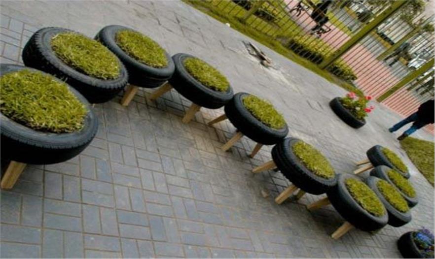 輪胎的使用已經(jīng)成為了InvasionVerde項(xiàng)目不了分割的一部分。輪胎可以制成桶、花壇,可以一半埋在地下,亦可以裝飾得漂漂亮亮。