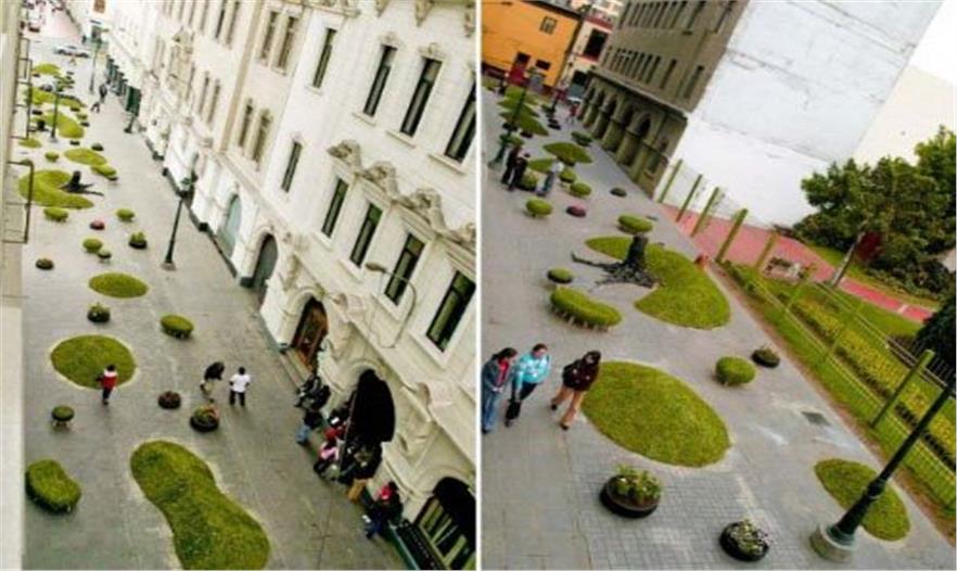 InvasionVerde的字面意思是綠色入侵,裝點(diǎn)了利馬的幾條中心街道。那里以前甚至連種植幾棵樹(shù)都是不可能,不久前卻有了一整片綠化面積。