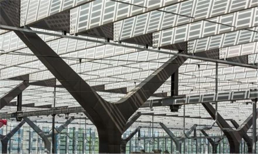 同樣,250米長(zhǎng)×150米寬x12米高,蓋過(guò)整個(gè)車站的屋頂結(jié)構(gòu),是鋼框架的體系。桁架柱的形狀像大寫(xiě)字母Y,直接引用舊平臺(tái)屋頂?shù)男螤睢?/p>