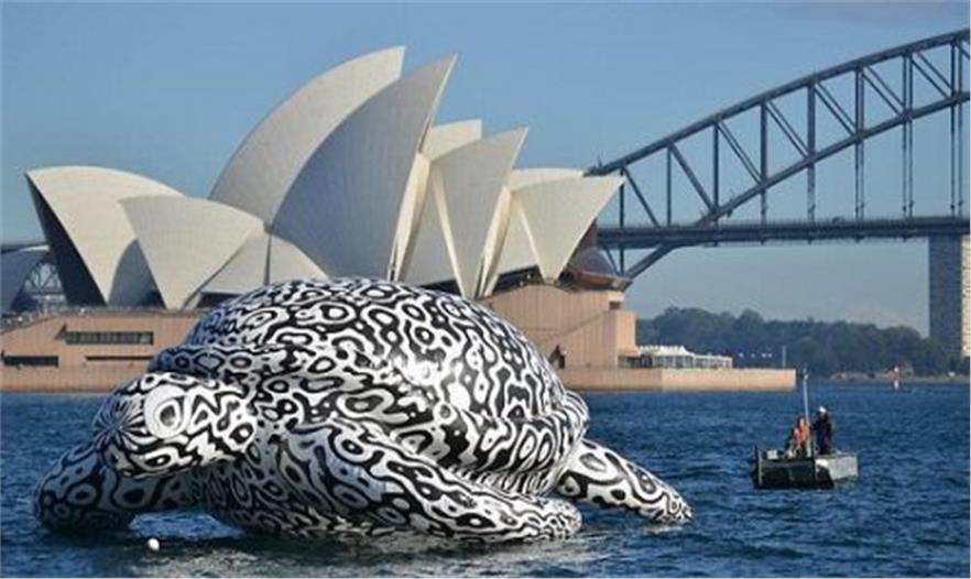 報(bào)道稱,這只巨龜在悉尼港漂過(guò)悉尼歌劇院、港口,以及悉尼大橋。巨龜名叫“阿爾法”,高15米,其身上布滿了黑白斑紋。
