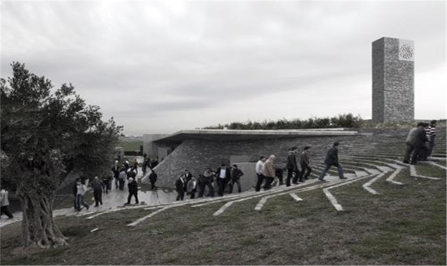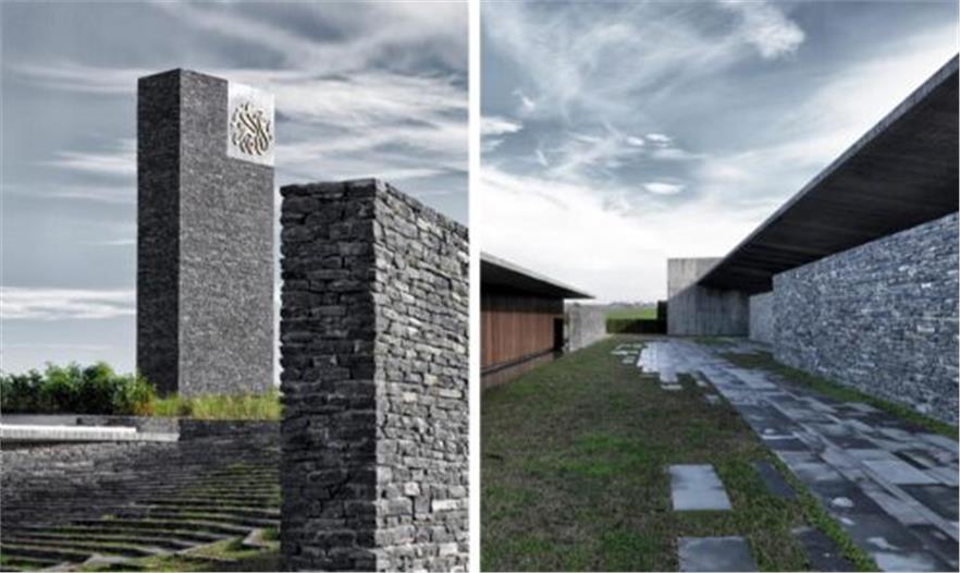 該項(xiàng)目的建造旨在揭示清真寺設(shè)計(jì)的基本問(wèn)題——討論宗教空間的本質(zhì)和形式。項(xiàng)目地址位于遠(yuǎn)離居民社區(qū)的草原景觀地區(qū),并被一條繁忙的高速公路圍合起來(lái)。公園外面的高墻,就像清真寺前院的屏風(fēng),將外部的混亂與公園內(nèi)部的清凈氣氛區(qū)別開來(lái),為我們呈現(xiàn)了兩個(gè)對(duì)比強(qiáng)烈且極其不同的世界。