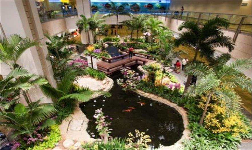樟宜國際機場內(nèi)部的露天游泳池和室內(nèi)花園設(shè)計為整座機場增添了不少自然元素。