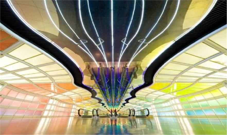 由著名建筑師邁克爾·海登設(shè)計建造的這座頗具動態(tài)光學(xué)設(shè)計的聯(lián)合航站樓會隨著音樂旋律的變化而呈現(xiàn)不同的顏色。