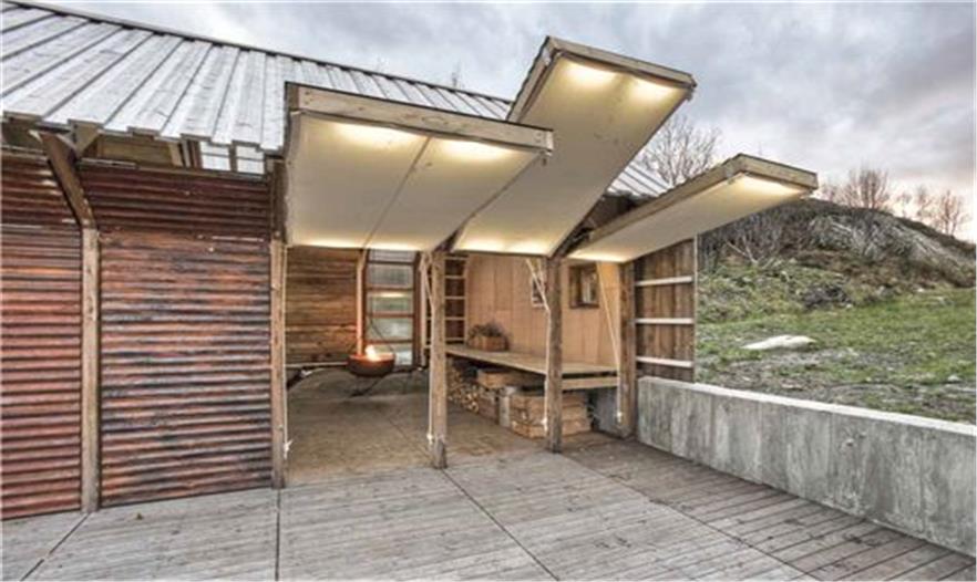 外立面是涂上了一層環(huán)保涂料的挪威松木,這層涂料會隨著時間的流逝產(chǎn)生一層灰色的氧化膜保護(hù)松木。南側(cè)的門開啟后可以創(chuàng)建出一個安全的世外區(qū)域。窗戶覆蓋的背光棉帆布讓光線變得輕柔。鋼制的屋頂,則在惡劣的天氣中保護(hù)著建筑。