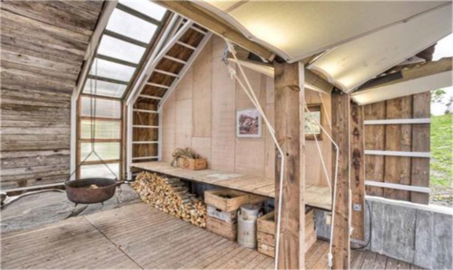 新建筑的重點(diǎn)放在山墻及靈活開啟的外墻面上。建筑材料使用了老建筑的一部分,也從附近的農(nóng)場收集了一部分用作窗戶的制作。窗戶的位置與建筑柱網(wǎng)關(guān)系相互對應(yīng)。