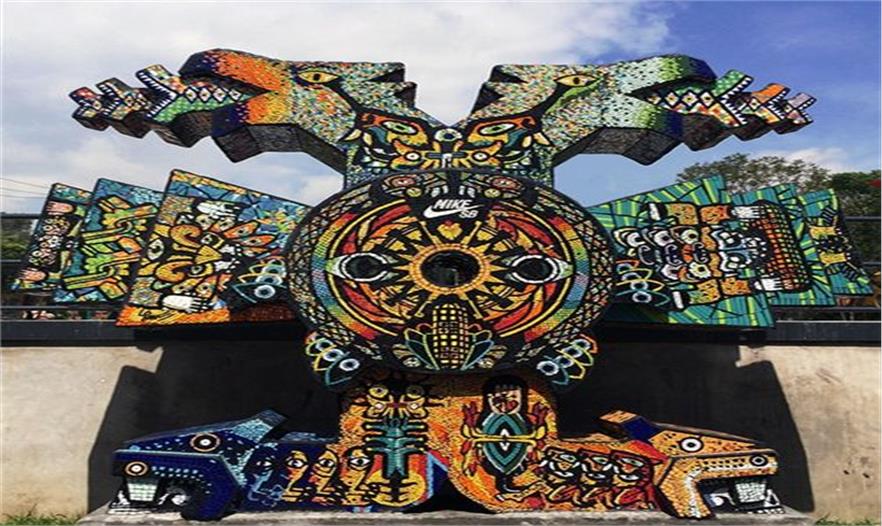 位于墨西哥城的NIKE大神廟滑板公園(NIKE templo mayor skatepark)是NIKE SB與墨西哥城政府友好合作的結(jié)晶。這座免費(fèi)的公園將會(huì)變成附近滑板愛(ài)好者之間切磋交流的樂(lè)園,它也是第一個(gè)位于美國(guó)本土之外,受到street league官方認(rèn)證的滑板公園。這座由“加州滑板公園(california skateparks)”設(shè)計(jì)的公園,充滿了阿茲臺(tái)克風(fēng)格的圖案與扶手。墨西哥藝術(shù)家luis ponce受邀為這座位于自己家鄉(xiāng)的公園,創(chuàng)作了一件阿茲臺(tái)克式的雕塑。