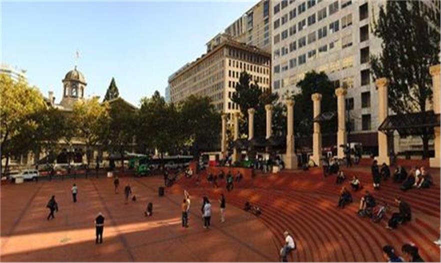 俄勒岡州波特蘭市的先鋒法院廣場做出了很好的示范。城市公園位于波特蘭的市區(qū)中心,以“城市客廳”的稱號聞名,每年吸引大約1000萬游客左右。