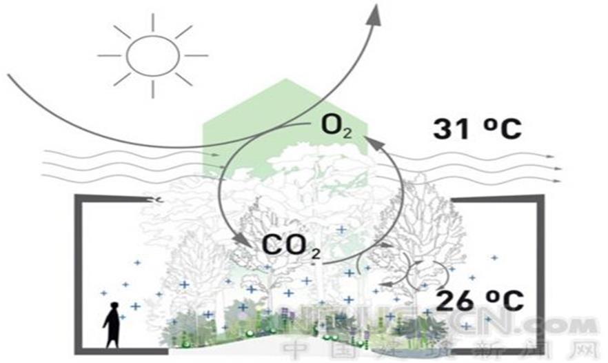 展館的目的是突出了空氣在食品和能源生產(chǎn)上的巨大意義,以及贊揚奧地利的高質(zhì)量空氣。通過將結(jié)建筑和種植景觀相結(jié)合,項目推廣在城市環(huán)境中增加綠色空間,以提供富氧和冷卻的氣候。