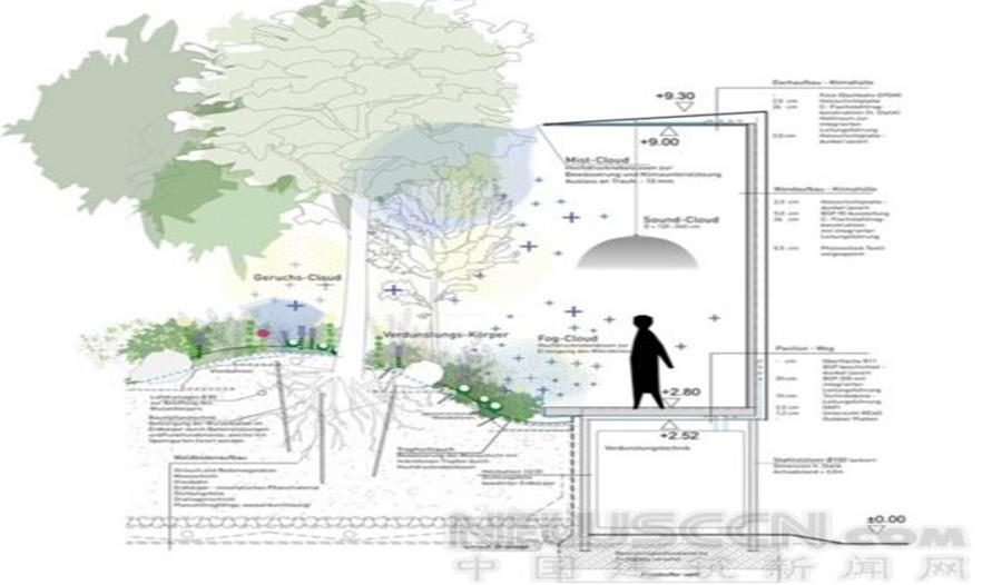 為了在2015年米蘭世博會上提升空氣質(zhì)量,奧地利館“呼吸”將坐落在一個面積達560平方米的森林外面。這個項目將會帶領(lǐng)游客進行一場丘陵和繁茂植被景觀的感官之旅,森林外面包圍著一幢用以支持項目活動和展覽的高層建筑。除了多樣化的植物類別,環(huán)境還能夠傳遞“聲音云”和“香味站”,進一步吸引人類的感官。設(shè)計是由奧地利格拉茨當(dāng)?shù)氐木坝^和都市化工作室“terrain”的klaus k. loenhart主導(dǎo),還包含了許多其他科學(xué)家和工程師的貢獻。