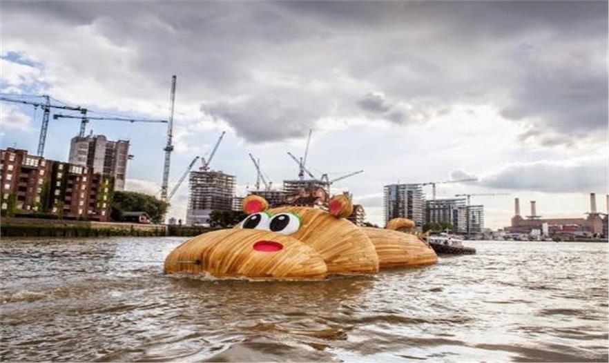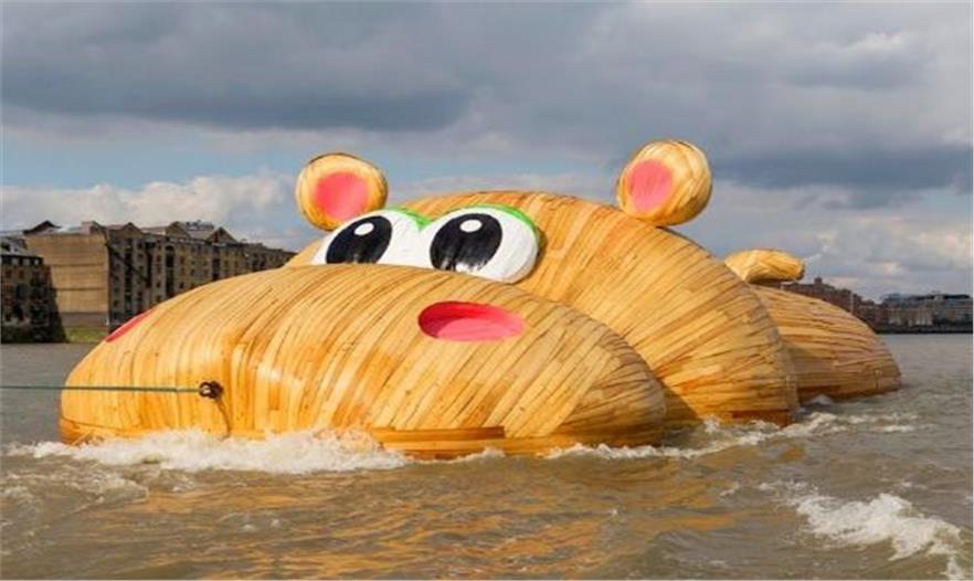 Thames網(wǎng)站報道了這樣一組照片,經(jīng)過了小黃鴨,小蘋果,大白兔以后我們終于迎來了大河馬!這是由荷蘭匠人Hofman制作的,長達(dá)70英尺長的木質(zhì)玩具河馬,就這樣游進(jìn)了泰晤士河,預(yù)測將會今年在9月中下旬經(jīng)過倫敦,在南岸可能就可以看見可愛的大河馬咯。