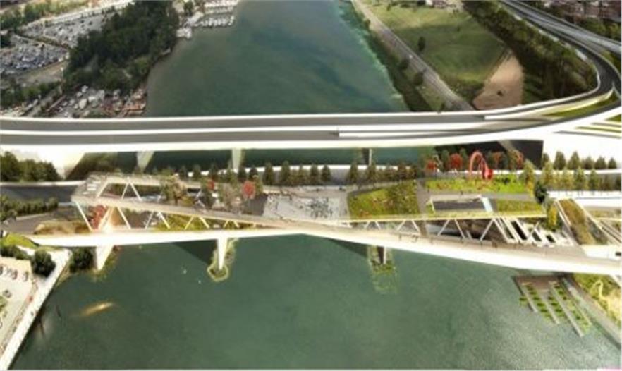 我們將11街天橋公園設(shè)計(jì)成一個(gè)交流的地方。公園在阿納卡斯蒂亞河上,通過(guò)一系列戶(hù)外空間和活動(dòng)區(qū)域創(chuàng)造一個(gè)盤(pán)旋在阿納卡斯蒂亞河之上卻又扎根于此的迷人場(chǎng)地,從而將把歷史上一直分開(kāi)的位于河流兩岸的區(qū)域連接起來(lái)。為了創(chuàng)建這個(gè)比起天橋更像是目的地的場(chǎng)所,我們將這座天橋公園設(shè)計(jì)為一個(gè)河流兩岸匯聚和共存的交流場(chǎng)所。阿納卡斯蒂亞河將提供多層次的方案,向大家展示一個(gè)新的社區(qū)公園,一個(gè)附近上班族下班后的目的地,一個(gè)居民休憩的場(chǎng)所和游客探索的區(qū)域。