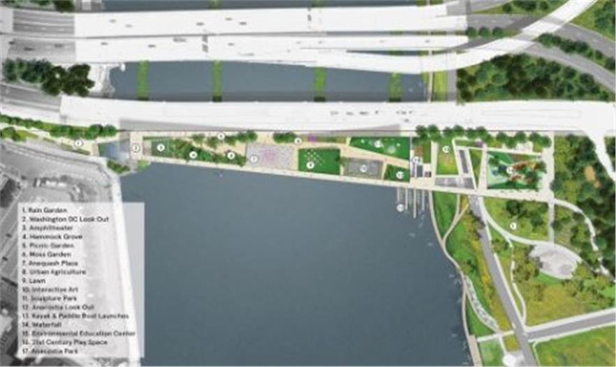 在華盛頓歷史上,先是小船和木筏,然后是渡船為整個(gè)城市的河流提供至關(guān)重要的聯(lián)系,包括阿納卡斯蒂亞河沿岸的地方。在離現(xiàn)在稍久一些的時(shí)候,擺渡工人住在阿納卡斯蒂亞河兩岸,工作在碼頭。這些渡口不再僅僅是通過(guò)的地方,而是變成集會(huì)的地方和社交的地方。我們的11街天橋公園方案將落實(shí)一個(gè)新的渡口,它將建立到達(dá)和穿越阿納卡斯蒂亞河的新連接,在社會(huì)和文化上豐富河流兩岸的街區(qū)生活。