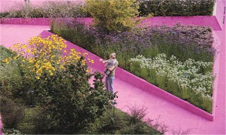 同色花壇結(jié)合了有藝術(shù)特色的傾斜狀的三角形草地。升高的花壇包括各種各樣的草本植物和醫(yī)藥植物以及選擇的同一標(biāo)準(zhǔn)的樹木和灌木—很有治愈性,也是健康的。