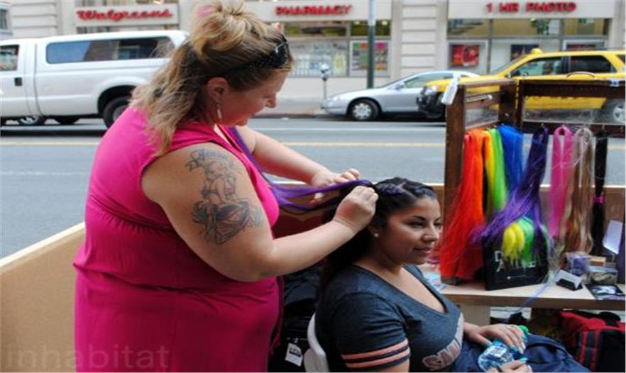 舊金山——這個臨時花園日發(fā)廊的租金是2美元/小時!Morphic的裝置以適用于所有行人的有趣的、五顏六色的接發(fā)以及束發(fā)風(fēng)格為特色。