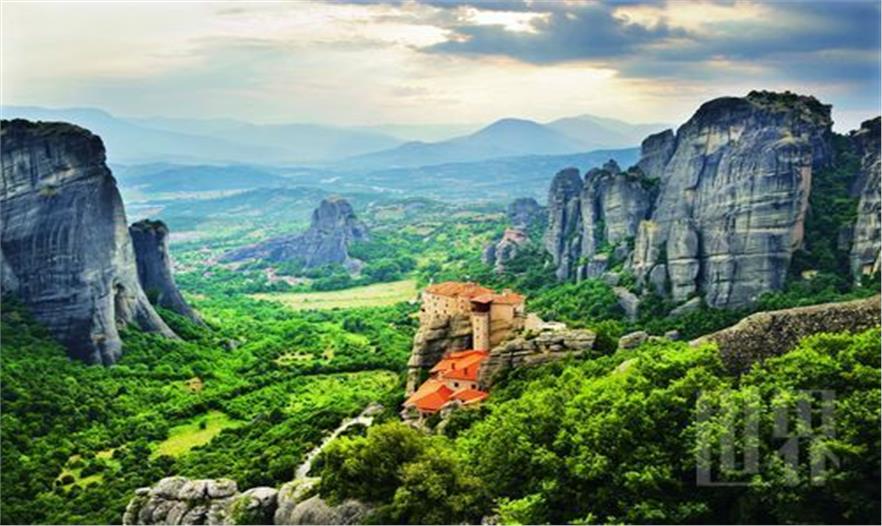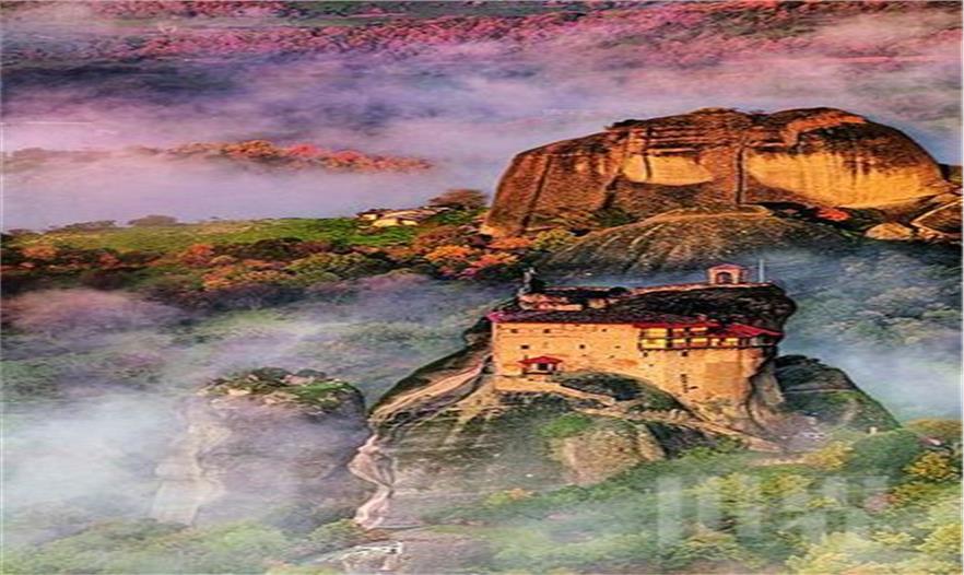 邁泰奧拉,希臘語中是“懸在空中”、“在空中徘徊”的意思。幾百萬年前,希臘北部的卡蘭巴卡(Kalambaka)是一片汪洋,地殼運動和海水的沖擊,使幾十塊巨大的巖石從塞薩里亞平原拔地而起。民間傳說更有趣,說這里是憤怒的神靈扔下的隕石。