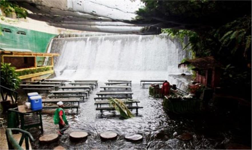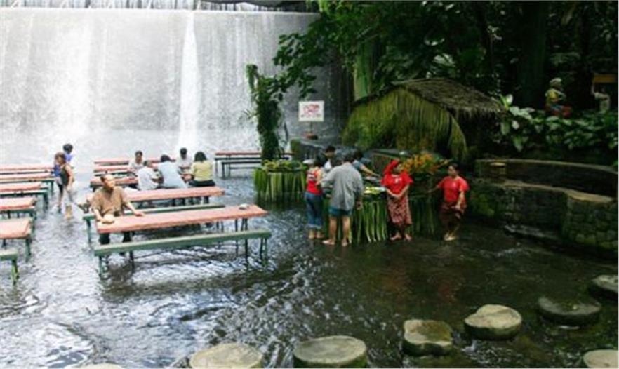 瀑布是世界上最具有奇跡和神秘氣息的景觀之一,但是接近瀑布不僅是困難,還是危險(xiǎn)的。圣巴勃羅市的埃斯庫德羅度假村讓顧客有一種特殊的體驗(yàn),在瀑布下享用午餐,親近瀑布,親自體驗(yàn)奔騰的瀑布。瀑布餐廳位于Labasin瀑布的山腳下,顧客可以在自制的竹木桌上享用當(dāng)?shù)氐牟穗龋瑫r(shí)清澈的泉水會(huì)流經(jīng)顧客的腳面。這個(gè)瀑布是很友好的,顧客可以躺在水墻上,做一個(gè)快速的按摩或者是飯后沖洗。在這個(gè)度假村里,允許不穿上衣和鞋。