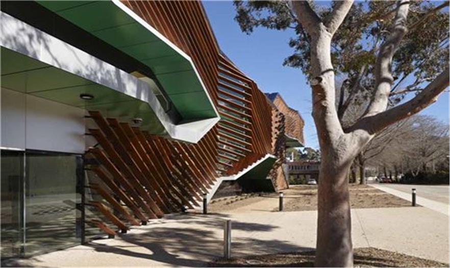 堪培拉澳大利亞國立大學生物科學研究中心是由Lyons設計完成的。該項目X形的交叉樓梯將兩邊的實驗室在空間上聯(lián)系起來,并在外面覆以木制百葉。