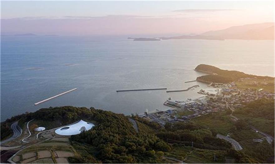 在日本美麗的水稻梯田上坐落著一個(gè)波動(dòng)起伏狀的結(jié)構(gòu);一個(gè)白色混凝土水滴狀的結(jié)構(gòu)安置在土壤中。這是豐島藝術(shù)博物館——一個(gè)弧形的混凝土空間,和豐島島嶼的環(huán)境很相稱。和傳統(tǒng)的博物館不同,你會(huì)找不到墻壁上懸掛的珍貴藝術(shù)品或者是房屋中安置的現(xiàn)代藝術(shù)品,因?yàn)樨S島藝術(shù)博物館本身就是吸引游客的藝術(shù)品。