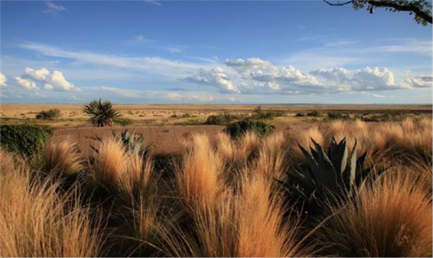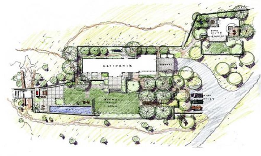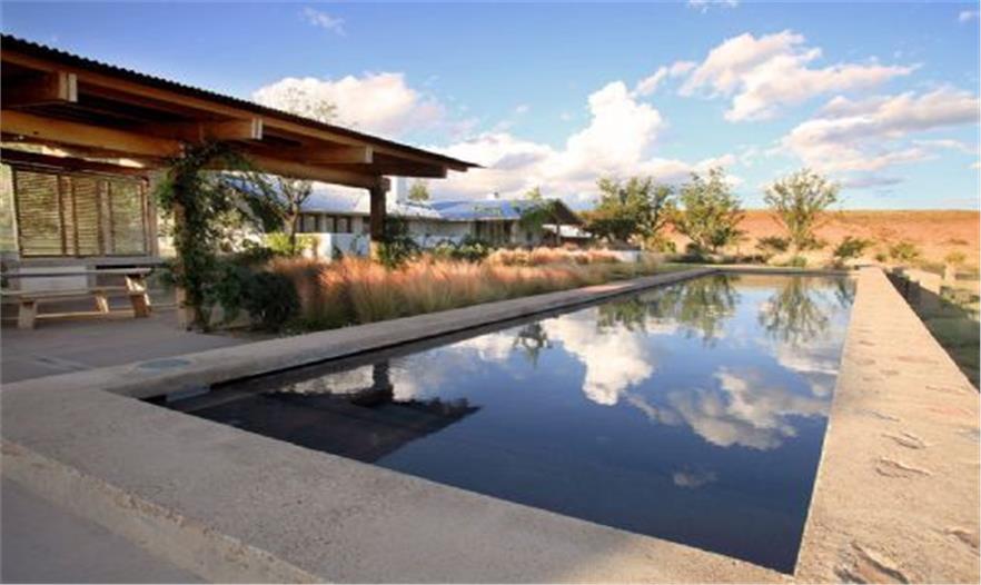 現(xiàn)有的牧場房屋、平房、8000英畝的荒地以及向南傾斜的草地都是西德克薩斯州牧場的組成部分。牧場的道路和用于放牧的這幾年導致土壤硬化,也使景觀退化??蛻粝MA粝逻@些退化的區(qū)域,把低維護的戶外聚集空間、水池、草坪、陰涼地、果樹以及花園整合到牧場景觀當中。經(jīng)過2.5英畝的精心設(shè)計,現(xiàn)在西德克薩斯牧場成了植被繁茂的沙漠草地以及處于適當位置的住宅花園。