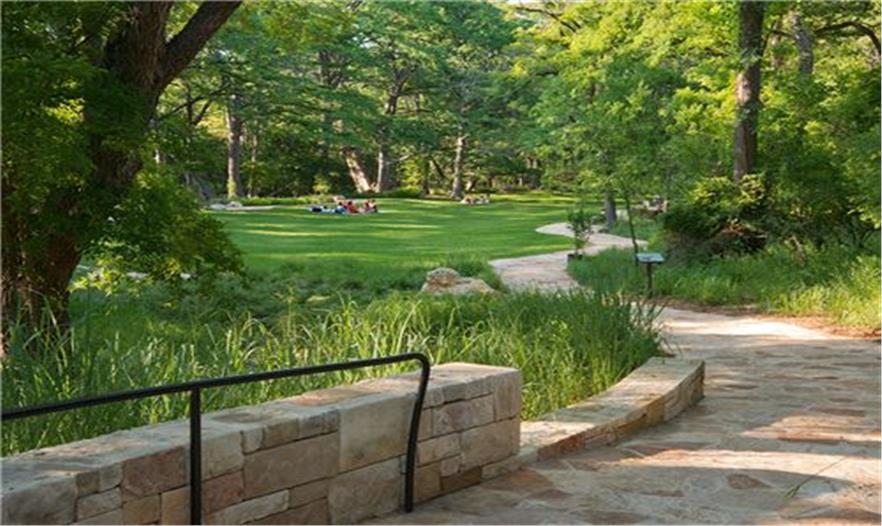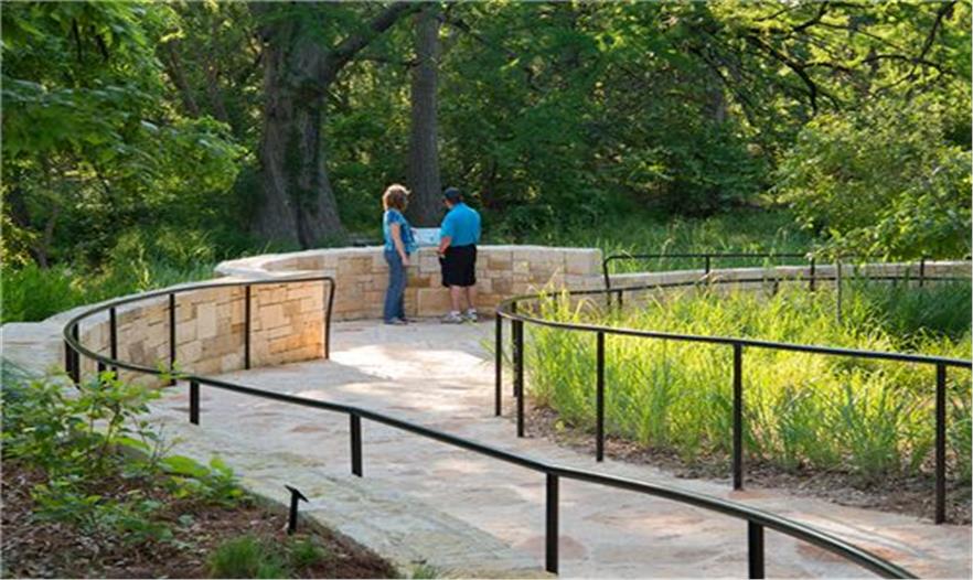 2011年開園時,在區(qū)域內(nèi)設(shè)置了與城市中心兩個步行系統(tǒng)聯(lián)系的4.8公里自然寧靜散步道,其中50%面積是嬰兒車使用者和輪椅使用者可以到訪的區(qū)域。這些步道與景區(qū)的核心景觀聯(lián)系,如要走的更深入和更自然,還得按照開發(fā)者的指示對場地進行隱藏道路的徒步探險。景觀設(shè)計師還針對該地區(qū)列出植被敏感恢復(fù)區(qū)、隔離區(qū)、草原區(qū)、稀樹草原區(qū)、森林區(qū)域。推廣吉祥豐富的耐旱本地植被。