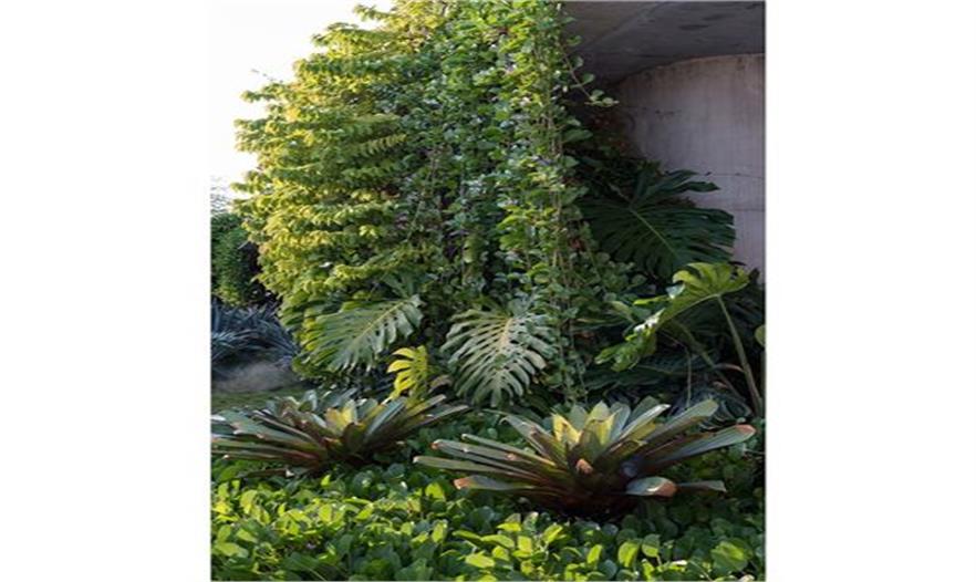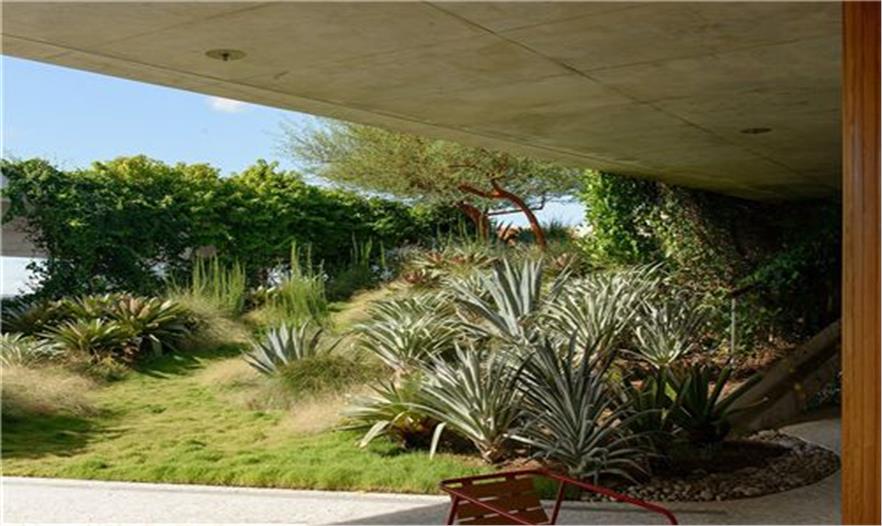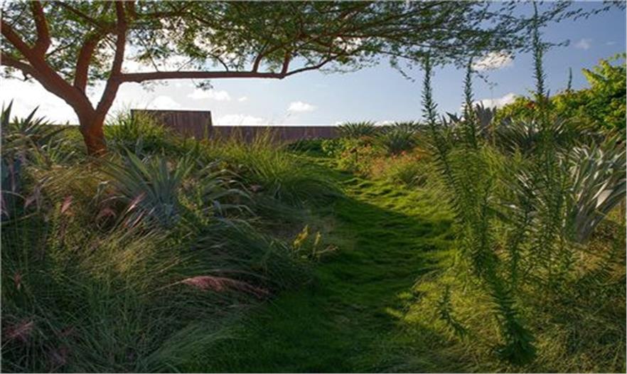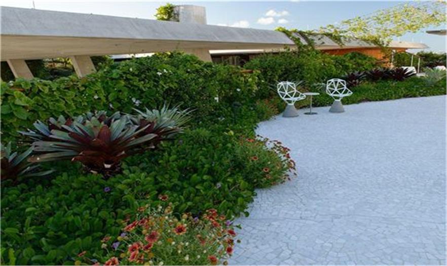 從非洲運來的紅皮相思園景樹提供了規(guī)模和景點的質(zhì)量,增添了大西洋地帶的景觀。除了非侵害性的園景植物之外,各種各樣的本土植物很好的適應(yīng)到該地區(qū)以及平均只有6寸的淺土層中。傾斜花園的植物包括大型的銀色鳳梨植物、海灣的帶狀草地、龍舌蘭、天人菊花、皇族鳳梨樹、墨西哥面包樹以及海邊的黃花?;▓@主要是本土、有彈性以及低維護的景觀。