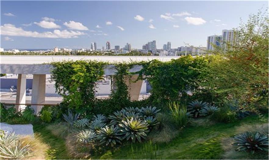 空中花園是新停車場屋頂上的一個隱秘的住宅花園,使佛羅里達(dá)邁阿密海灘的辦公樓煥然一新??蛻粝M〈鷤鹘y(tǒng)的混凝土和建筑設(shè)施,建造一個繁茂的野生花園,來完善他們自己的住宅以及匹配世界著名設(shè)計師所設(shè)計的獲獎停車場。該地區(qū)有如強風(fēng)、強烈的太陽光以及有限的植被區(qū)域的限制條件,但它有大量的鳥類和傳粉者。