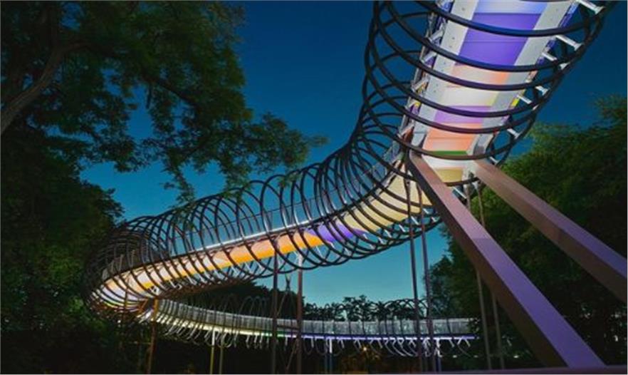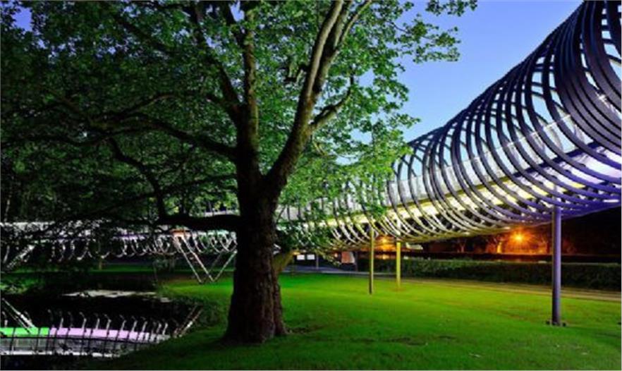 這座橋名叫“Slinky Springs To Fame ”,位于德國的奧伯豪森市,橫跨萊茵河。是由藝術(shù)家托比亞斯Rehberger和施萊克Bergermann設(shè)計(jì)而成
