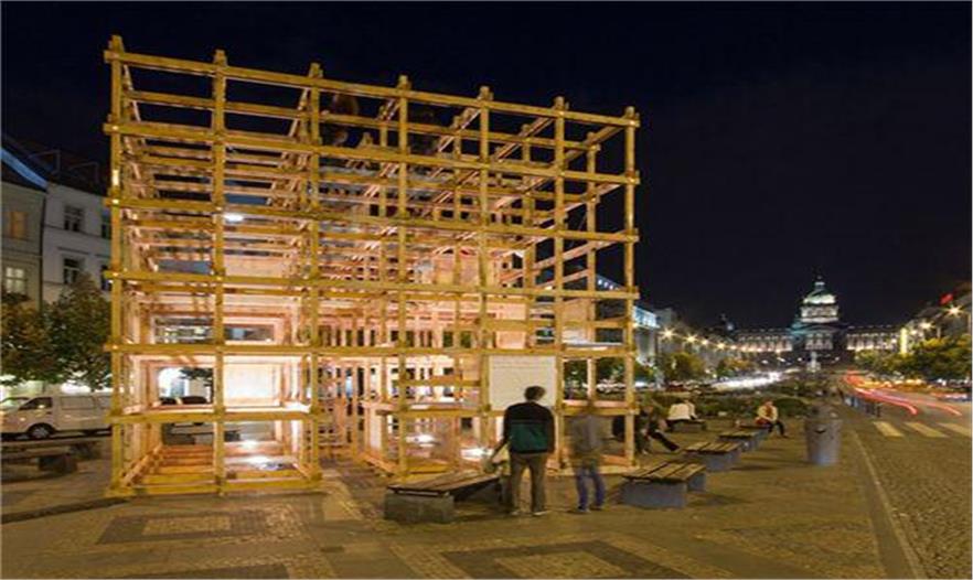 designblok立方體的建設(shè)過(guò)程看起來(lái)跟周圍已經(jīng)投入使用的建筑類似。團(tuán)隊(duì)自己在鋸木廠組建整個(gè)結(jié)構(gòu),然后運(yùn)送到瓦茨拉夫廣場(chǎng)。他們解釋說(shuō),“我們有一個(gè)小的工作室和車間來(lái)進(jìn)行這些工作。我們已經(jīng)在車間里完成了所有的工作。我認(rèn)為這是偉大的,因?yàn)槲覀円恢痹趪L試,并且學(xué)到了很多東西。”Designblok的公共展館是市中心的一個(gè)重要地標(biāo)建筑,為布拉格的居民和大量的國(guó)際游客提供了一個(gè)臨時(shí)放松和探討建筑的場(chǎng)所。