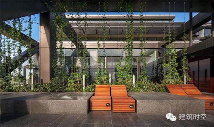 各類植物包裹著建筑,這些綠色的植生墻好像是周圍的綠地延伸上來一樣。