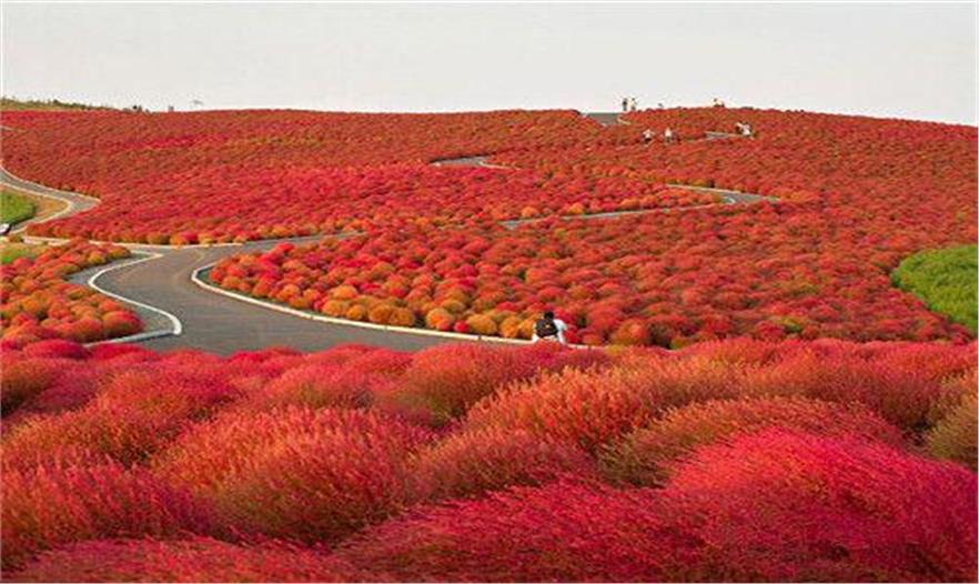 種滿花草的日本海濱公園。轉紅的植物在阿聯(lián)眼里看來有點像一堆堆的荔枝。