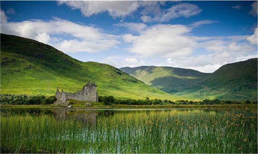 被秋天包圍的蘇格蘭Kilchurn古堡靜靜的在河邊佇立著。