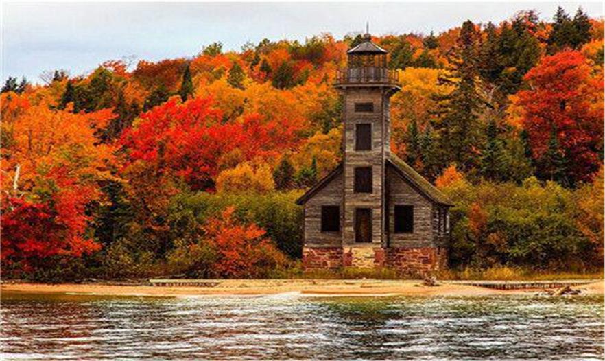 周遭的楓葉讓密西根州燈塔美得像幅畫。