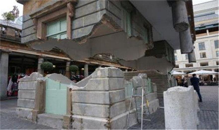 這個(gè)建筑藝術(shù)品不論從各個(gè)角度看,都像攔腰被打斷,在空中飄浮10英尺,令經(jīng)過的民眾嘖嘖稱奇,許多人還特別走進(jìn)建筑物內(nèi),用手觸摸,不由得贊嘆藝術(shù)家的巧思。