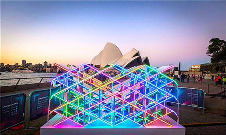 作為“生動(dòng)悉尼活動(dòng)”的一部分,建造師Vin Rathod建造了一個(gè)壯觀的萬花筒燈光裝置,命名為Kaleido Wall 1.0。這個(gè)多彩的Kaleido Wall在著名的悉尼歌劇院對(duì)面,在這個(gè)熟悉的地方又增加了一個(gè)多彩的裝置。